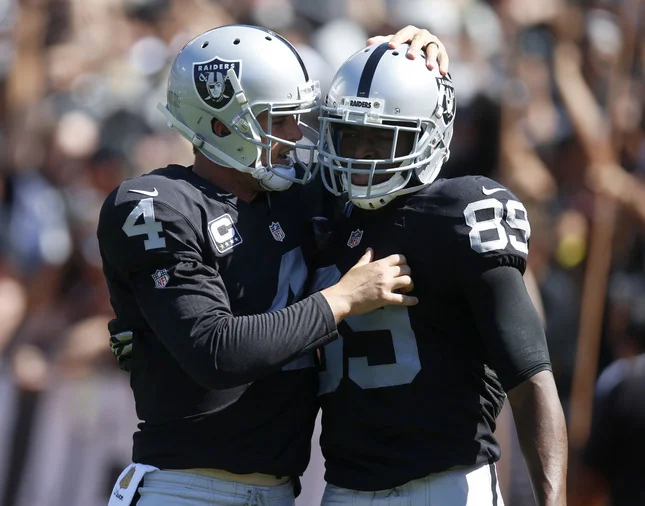 Derek Carr and Amari Cooper are apart of a young nucleus that has brought hope and excitement back to the storied Raiders franchise. (Photo Credit: cleatgeeks.com)